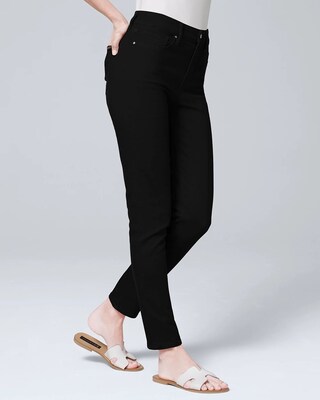 In need of new black jeans? Look no further. This style checks all the boxes. Constructed with our ultra-flattering Sculpt denim, an innovative 360º stretch fabric that lifts and sculpts for a customized fit. These straight-leg jeans also have a high-rise with a panel at the waistband to smooth your midsection. Versatility is also a key point. These can easily pair with a blazer for an office look, work with a blouse for a date-night or pair with a knit for a cozy weekend outfit. Lastly, the crop cut keeps things easy and allows you to show off your shoes.